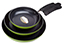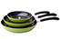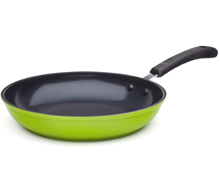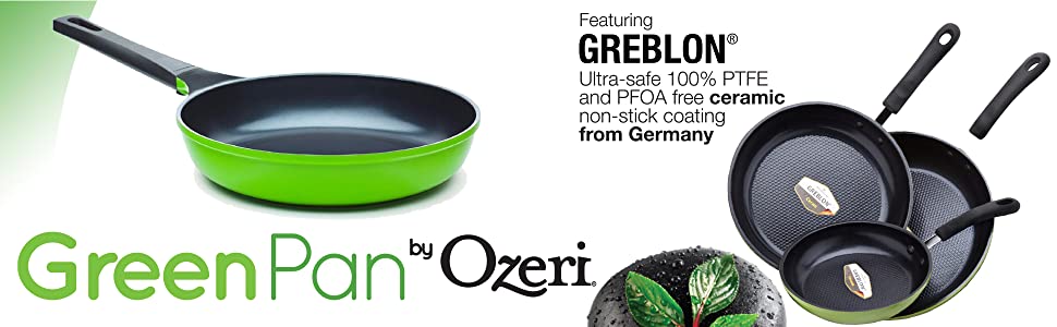 The Green Ceramic Pan Set by Ozeri includes an 8", 10" and 12" frying pan that each offers a non-stick solution while remaining free of PTFE, perfluorinated chemicals (PFCs) such as PFBS, PFAS, PFOS and PFOA, APEO, GenX, and the lesser known chemicals NMP and NEP. According to the FDA, many of these chemicals constitute a worrisome class of nonstick and stain-resistant compounds that have found their way into the food chain, including grocery store meats and seafood. A federal toxicology report has linked a number of health concerns to the presence of these compounds in people’s blood. Conventional pans sometimes achieve their non-stick performance through a waxy synthetic coating of PTFE (PolyTetraFluoroEthylene), which under extreme temperatures begins to decompose and release fumes that can be harmful to humans and pets. Additionally, conventional may also utilize non-stick coatings made with the aid of per- and polyfluoroalykyl chemicals, also known as PFCs (PFBS, PFAS, PFOS, PFOA), which the EPA has cited as potential carcinogens and classified as a 'persistent pollutant of the environment,’ and APEO (Alkylphenol ethoxylates), which are restricted in Germany due to environmental concerns and toxicity in the food chain.