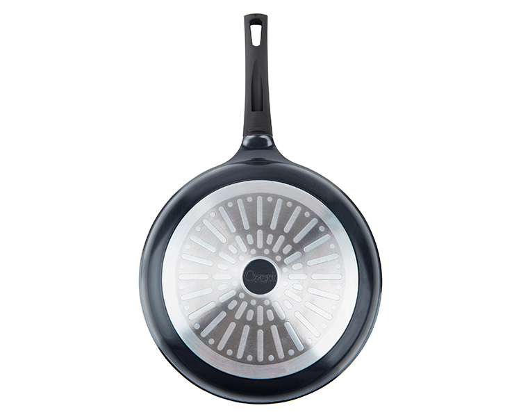 Utilizing pure ceramic as a coating, the Green Ceramic Pan by Ozeri achieves non-stick perfection while remaining absolutely free of PTFE, PFAS and GenX chemicals (APEO, PFBS, PFOS, PFOA). Conventional cookware and other ceramic cookware brands achieve their non-stick performance through a coating of PTFE, a synthetic substance that has waxy properties. At very high temperatures, PTFE can begin to decompose and release fumes which are documented to be lethal to birds and small pets, and which can be harmful to humans. Although acids PFOA and PFOS have been generally phased out of cookware production as persistent pollutants, non-stick coatings today are often made with the aid of a new generation of advanced fluoropolymers, known as GenX fluorinated chemicals and PFBS. Data from research on these chemicals shows that they are suggestive of cancer and when orally consumed, these chemicals may be harmful to health. The Green Ceramic Pan's 100% ceramic coating is completely free of PTFE, PFAS and GenX fluoropolymers. With exceptional non-stick properties, the Green Ceramic Pan by Ozeri allows you to saute, fry, bake, boil and braise with as little as half the amount of oil normally used, and it makes cleaning a breeze. The Green Ceramic Pan by Ozeri is made of the highest quality die-cast aluminum that allows for even cooking and fantastic browning without the risk of hot spots. It boasts a magnetized bottom for rapid heat transfer on induction stoves, and a heat resistant Bakelight handle.