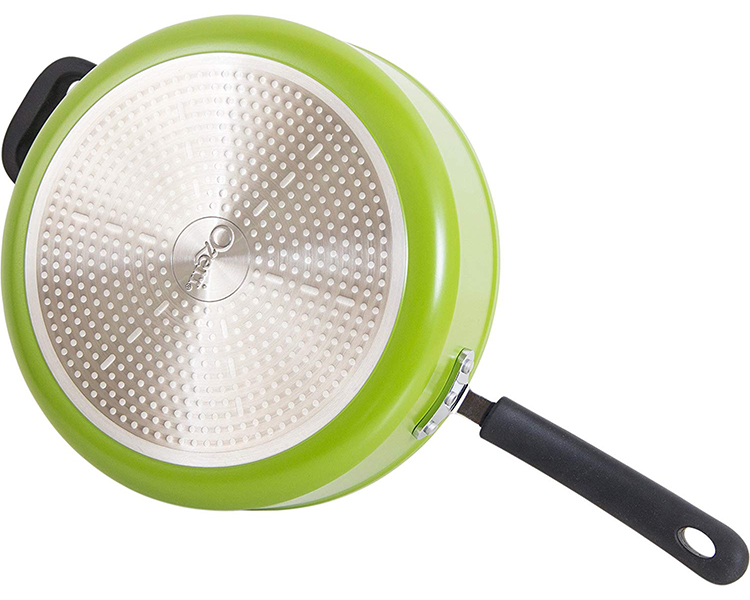 Utilizing a custom-formulated ceramic coating from Germany, the 5 L (5.3 Quart) All-In-One Green Sauce Pan by Ozeri reigns with its ability to deliver non-stick perfection while remaining absolutely free of toxic substances such as APEO, GenX fluorinated chemicals, PFBS, PFOS, PFOA, and the lesser-known chemicals NMP and NEP. According to the FDA, many of these chemicals constitute a worrisome class of nonstick and stain-resistant compounds that have found their way into the food chain, including grocery store meats and seafood. A federal toxicology report has linked a number of health concerns to the presence of these compounds in people’s blood. Although the harmful acid PFOA, and to a certain extent PFOS, have been generally phased out of production, non-stick coatings today are often made with the aid of a new generation of advanced fluoropolymers, known as GenX fluorinated chemicals and PFBS. According to EPA studies on these chemicals, the “data are suggestive of cancer” and when orally consumed, these chemicals may be capable of affecting the kidneys, blood, immune system, liver and developing fetuses. Also of concern are APEO chemicals (Alkylphenol ethoxylates), which are restricted in Germany due to environmental concerns and toxicity in the food chain. Labeled ‘forever chemicals’ due to their poor degradability and tendency to accumulate in people’s bodies, the EPA and FDA have cited consistent studies of people exposed to many of these compounds that suggest associations with several kinds of cancers, liver problems, low birth weight and other issues, concluding that many of these compounds are more dangerous than previously thought.