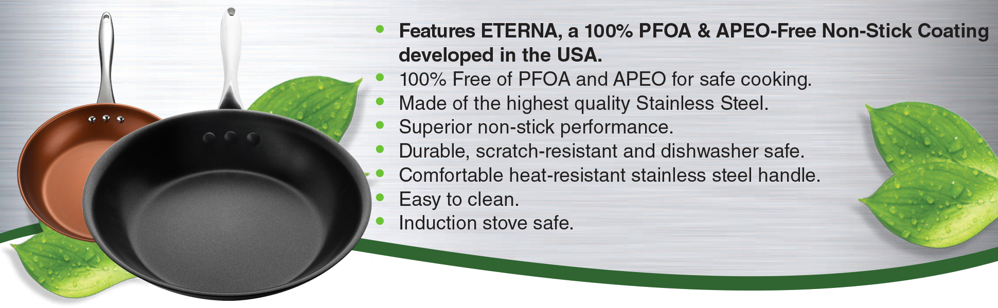 - Features ETERNA, the world's longest lasting 100% PFOA and APEO-free non-stick coating developed in the USA.