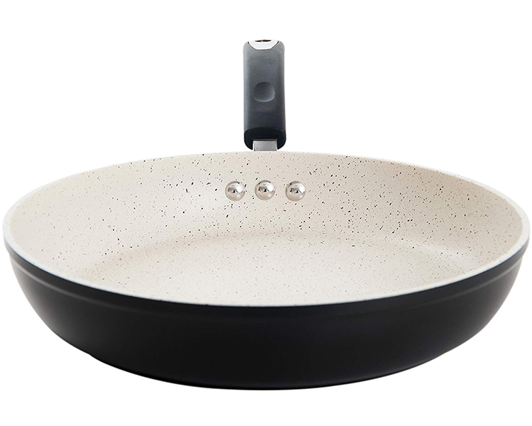 Utilizing a custom-formulated stone-derived coating from Germany, the Stone Frying Pan by Ozeri reigns with its ability to deliver non-stick perfection while remaining absolutely free of toxic substances such as APEO, GenX fluorinated chemicals, PFBS, PFOS, PFOA, and the lesser known chemicals NMP and NEP. According to the FDA, many of these chemicals constitute a worrisome class of nonstick and stain-resistant compounds that have found their way into the food chain, including grocery store meats and seafood. A federal toxicology report has linked a number of health concerns to the presence of these compounds in people’s blood. Although the harmful acid PFOA, and to a certain extent PFOS, have been generally phased out of production, non-stick coatings today are often made with the aid of a new generation of advanced fluoropolymers, known as GenX fluorinated chemicals and PFBS. According to EPA studies on these chemicals, the “data are suggestive of cancer” and when orally consumed, these chemicals may be capable of affecting the kidneys, blood, immune system, liver and developing fetuses. Also of concern are APEO chemicals (Alkylphenol ethoxylates), which are under restricted use in Germany due to environmental concerns and toxicity in the food chain.