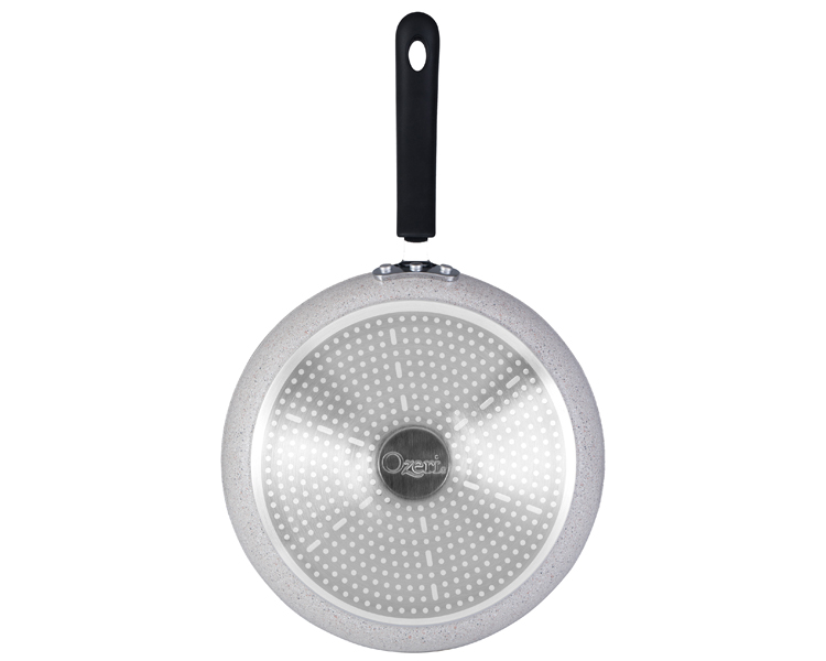 Conventional pans often achieve their non-stick performance with the aid of PFOA (PerFluoroOctanoic Acid), a potential carcinogen which the EPA has classified as a 'persistent pollutant of the environment', and APEO (Alkylphenol ethoxylates), which are under restricted use in Germany due to environmental concerns about their poor biodegradability and toxicity in the food chain. According to the EPA, once ingested, PFOA is capable of remaining in people for a very long time, and has been shown to cause developmental and other adverse effects in laboratory animals. Likewise, European studies have shown that APEO may be toxic to aquatic life, and has the potential to act as endocrine disrupters. With the Stone Pan's stone-derived coating from Germany, even under high temperatures, no such controversial chemicals are ever passed on to you, or released into the environment. This is because the Stone Pan utilizes an inert coating inspired by nature. In addition to being completely free of PFOA and APEO, the Stone Pan is also far more durable and scratch-resistant than other non-stick surfaces. With better non-stick properties, the Stone Pan consistently renders cleaning a breeze. The Stone Pan by Ozeri is made of the highest quality die-cast aluminum that allows for even cooking with maximum heat retention. It boasts a magnetized bottom for rapid heat transfer on induction stoves, and a heat resistant silicone coated handle. Your satisfaction is guaranteed. STONEHENGE coating made by Weilburger GmbH, Germany. Final pan assembly in China.