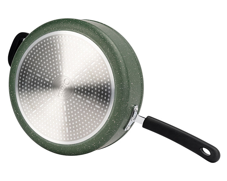 Utilizing a custom-formulated stone-derived coating from Germany, the 5 L (5.3 Quart) All-In-One Stone Sauce Pan by Ozeri reigns with its ability to deliver non-stick perfection while remaining absolutely free of toxic substances such as APEO, GenX fluorinated chemicals, PFBS, PFOS, PFOA, and the lesser known chemicals NMP and NEP. According to the FDA, many of these chemicals constitute a worrisome class of nonstick and stain-resistant compounds that have found their way into the food chain, including grocery store meats and seafood. A federal toxicology report has linked a number of health concerns to the presence of these compounds in people’s blood. Although the harmful acid PFOA, and to a certain extent PFOS, have been generally phased out of production, non-stick coatings today are often made with the aid of a new generation of advanced fluoropolymers, known as GenX fluorinated chemicals and PFBS. According to EPA studies on these chemicals, the “data are suggestive of cancer” and when orally consumed, these chemicals may be capable of affecting the kidneys, blood, immune system, liver and developing fetuses. Also of concern are APEO chemicals (Alkylphenol ethoxylates), which are restricted in Germany due to environmental concerns and toxicity in the food chain.