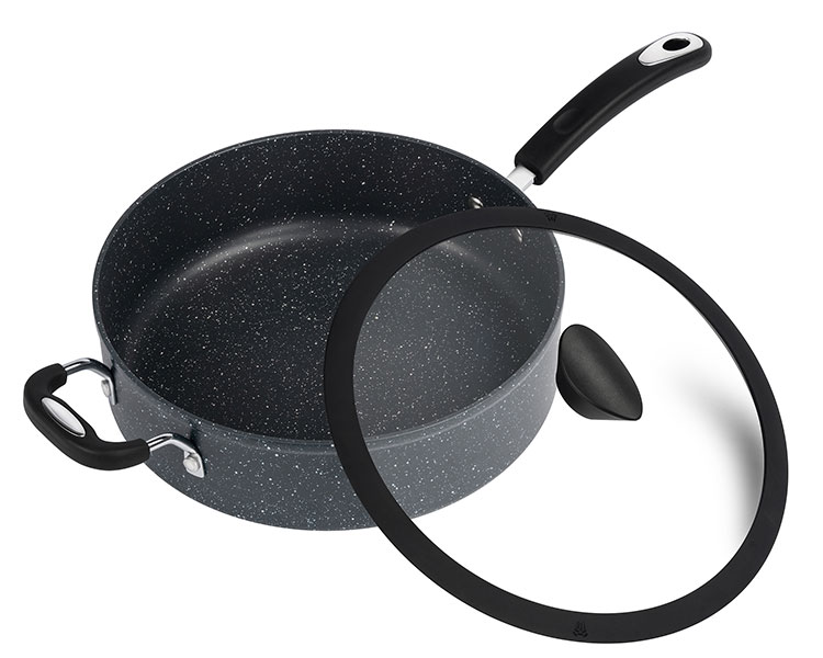 Utilizing a custom-formulated stone-derived coating from Germany, the 5 L (5.3 Quart) All-In-One Stone Sauce Pan by Ozeri reigns with its ability to deliver non-stick perfection while remaining absolutely free of toxic substances such as APEO, GenX fluorinated chemicals, PFBS, PFOS, PFOA, and the lesser known chemicals NMP and NEP. According to the FDA, many of these chemicals constitute a worrisome class of nonstick and stain-resistant compounds that have found their way into the food chain, including grocery store meats and seafood. A federal toxicology report has linked a number of health concerns to the presence of these compounds in people’s blood. Although the harmful acid PFOA, and to a certain extent PFOS, have been generally phased out of production, non-stick coatings today are often made with the aid of a new generation of advanced fluoropolymers, known as GenX fluorinated chemicals and PFBS. According to EPA studies on these chemicals, the “data are suggestive of cancer” and when orally consumed, these chemicals may be capable of affecting the kidneys, blood, immune system, liver and developing fetuses. Also of concern are APEO chemicals (Alkylphenol ethoxylates), which are restricted in Germany due to environmental concerns and toxicity in the food chain.