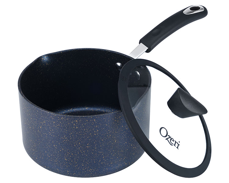 Utilizing a custom-formulated stone-derived coating from Germany, the 3.0 L (3.2 Quart) All-In-One Stone Sauce Pan and Cooking Pot by Ozeri reigns with its ability to deliver non-stick perfection while remaining absolutely free of toxic substances such as APEO, GenX fluorinated chemicals, PFBS, PFOS, PFOA, and the lesser-known chemicals NMP and NEP. According to the FDA, many of these chemicals constitute a worrisome class of nonstick and stain-resistant compounds that have found their way into the food chain, including grocery store meats and seafood. A federal toxicology report has linked a number of health concerns to the presence of these compounds in people’s blood. Although the harmful acid PFOA, and to a certain extent PFOS, have been generally phased out of production, non-stick coatings today are often made with the aid of a new generation of advanced fluoropolymers, known as GenX fluorinated chemicals and PFBS. According to EPA studies on these chemicals, the “data are suggestive of cancer” and when orally consumed, these chemicals may be capable of affecting the kidneys, blood, immune system, liver and developing fetuses. Also of concern are APEO chemicals (Alkylphenol ethoxylates), which are restricted in Germany due to environmental concerns and toxicity in the food chain. Labelled ‘forever chemicals’ due to their poor degradability and tendency to accumulate in people’s bodies, the EPA and FDA have cited consistent studies of people exposed to many of these compounds that suggest associations with several kinds of cancers, liver problems, low birth weight and other issues, concluding that many of these compounds are more dangerous than previously thought. By not using these fluorinated chemicals, the All-In-One Stone Sauce Pan and Cooking Pot’s German-made coating stands ahead of the curve, achieving the highest marks for food safety and environmental health. In addition, the Stone Sauce Pan uses an inert coating that is applied using a water-based Sol Gel Technique which is also free of the lesser known but potentially harmful chemicals NMP (N-Methyl-2-pyrrolidone) and NEP (N-ethyl-2-pyrrolidone), sometimes found in traditional cookware. Hardened for longevity, the Stone Sauce Pan and Cooking Pot is also far more durable and scratch-resistant than other non-stick surfaces. With superior non-stick properties, the Sauce Pan consistently renders cleaning a breeze. The Stone Sauce Pan and Cooking Pot is made of a heavy-gauge aluminum core that allows for even cooking without hot spots. It boasts a magnetized bottom for use on induction stoves, a heat-resistant silicone-coated handle, left and right-handed pour spouts, and a tempered glass lid with a steam release vent and heat-resistant knob. Coating made by Weilburger GmbH, Germany. Sauce pan assembled in China.
