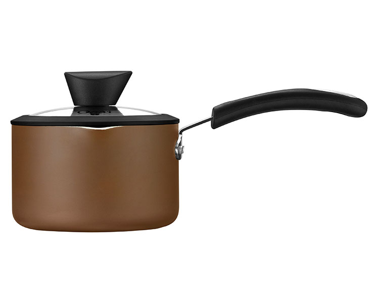 - Sauce pan features a layered aluminum core that conducts and sustains heat, with a hardened scratch-resistant coating that is super easy to clean.