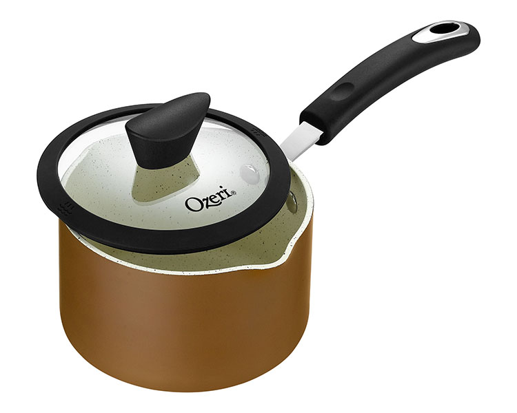 Utilizing a custom-formulated stone-derived coating from Germany, the 1.5 L (1.6 Quart) All-In-One Stone Sauce Pan and Cooking Pot by Ozeri reigns with its ability to deliver non-stick perfection while remaining absolutely free of toxic substances such as APEO, GenX fluorinated chemicals, PFBS, PFOS, PFOA, and the lesser-known chemicals NMP and NEP. According to the FDA, many of these chemicals constitute a worrisome class of nonstick and stain-resistant compounds that have found their way into the food chain, including grocery store meats and seafood. A federal toxicology report has linked a number of health concerns to the presence of these compounds in people’s blood. Although the harmful acid PFOA, and to a certain extent PFOS, have been generally phased out of production, non-stick coatings today are often made with the aid of a new generation of advanced fluoropolymers, known as GenX fluorinated chemicals and PFBS. According to EPA studies on these chemicals, the “data are suggestive of cancer” and when orally consumed, these chemicals may be capable of affecting the kidneys, blood, immune system, liver and developing fetuses. Also of concern are APEO chemicals (Alkylphenol ethoxylates), which are restricted in Germany due to environmental concerns and toxicity in the food chain.
