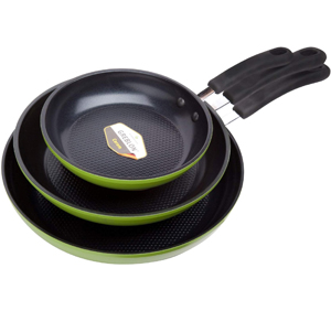 Green Frying Pan 3-Piece Set by Ozeri (8", 10", 12"), with Textured Ceramic Non-Stick Coating from Germany (100% PTFE, PFOA and APEO Free)