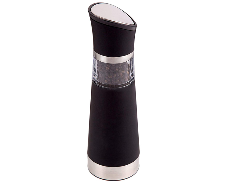 Designed for one-handed operation, the sleek and stylish Ozeri Graviti Pro Electric Pepper Grinder automatically activates when inverted for effortless dispensing of freshly ground seasonings. The elegantly designed Graviti Pro boasts a transparent storage container for your fresh peppercorn or salt and a top-mounted grind adjustor that never leaves a trail or mess. Also featuring a fingerprint-resistant ultra-soft grip, the attention-grabbing Ozeri Graviti Pro is equally at home in the hand of a fast paced cook as it is on any elegantly set dining table.