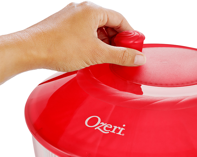 Available in three colors, the Italian made Ozeri Fresca Salad Spinner and Serving Bowl combines simplicity and ease-of-use with exceptional performance. The Ozeri Fresca Salad Spinner features a large 4.4 qt / 4.2 L colander and bowl made entirely of food-safe and BPA-free materials that accommodates all your greens and herbs. The outer bowl doubles as an elegant serving dish for any salad or any other dish. Developed under exacting standards to deliver frictionless perfection, the Fresca Salad Spinner delivers spin action with minimal effort and without disruptive noise. Designed for lifetime use and dishwasher-safe, the Ozeri Fresca Salad Spinner is supremely easy to use and even easier to clean. Made in Italy.