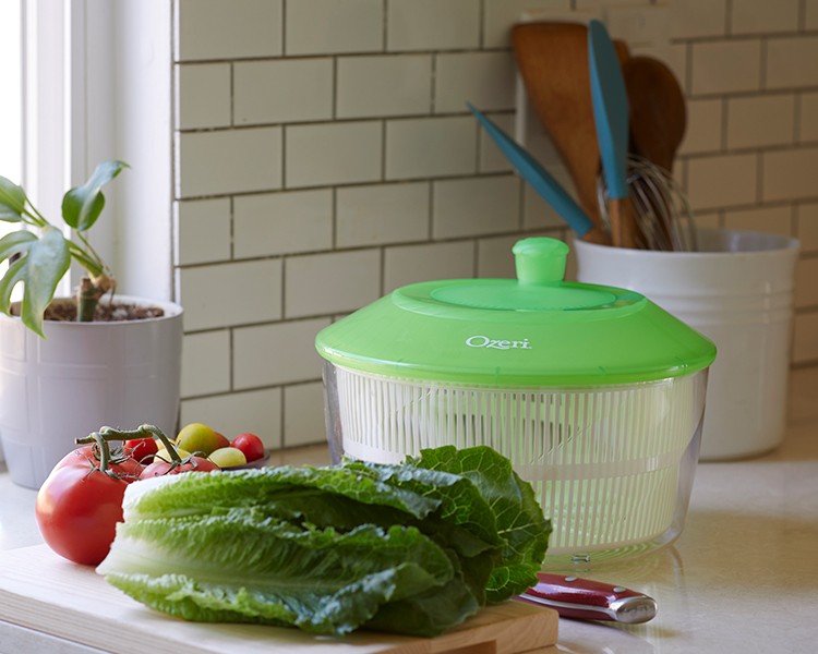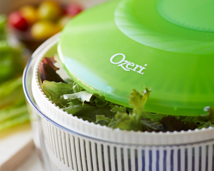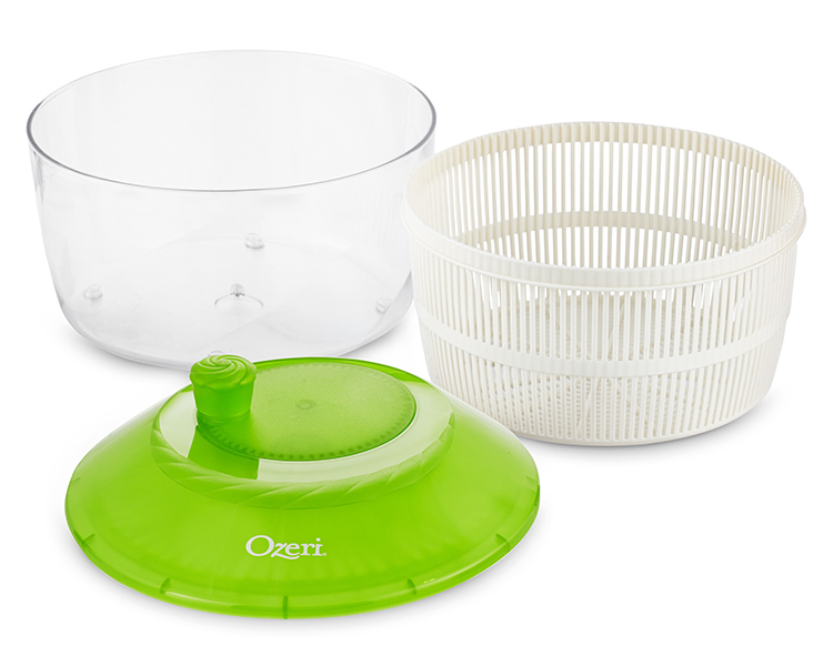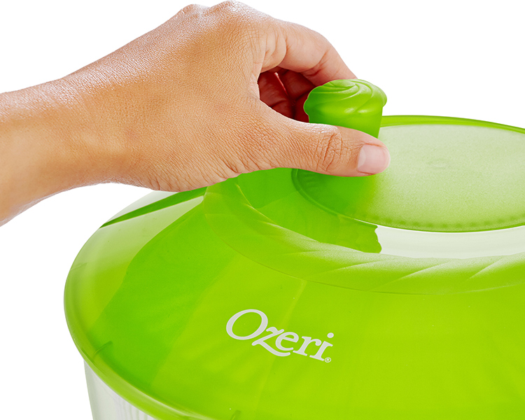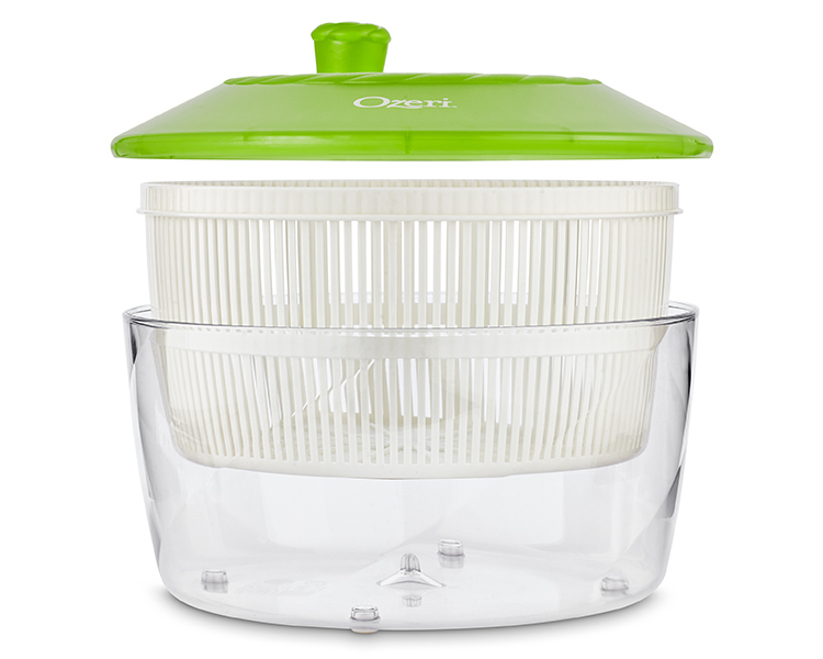 Available in two colors, the Italian made Ozeri Fresca Salad Spinner and Serving Bowl combines simplicity and ease-of-use with exceptional performance. The Ozeri Fresca Salad Spinner features a large 4.4 qt / 4.2 L colander and bowl made entirely of food-safe and BPA-free materials that accommodates all your greens and herbs.