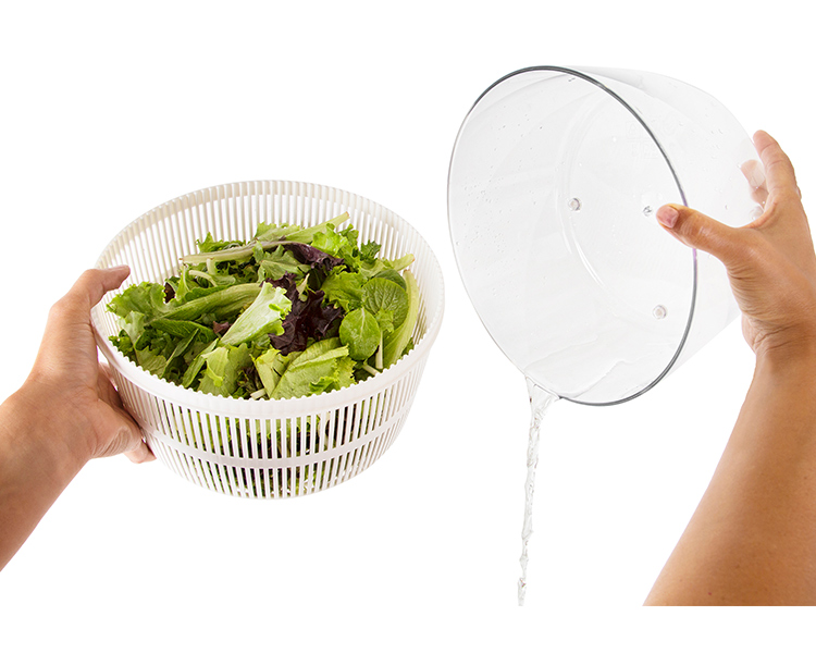 The outer bowl doubles as an elegant serving dish for any salad or any other dish. Developed under exacting standards to deliver frictionless perfection, the Fresca Salad Spinner delivers spin action with minimal effort and without disruptive noise. Designed for lifetime use and dishwasher-safe, the Ozeri Fresca Salad Spinner is supremely easy to use and even easier to clean. Made in Italy.