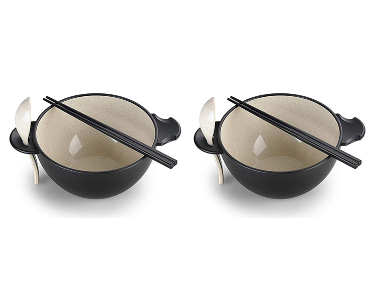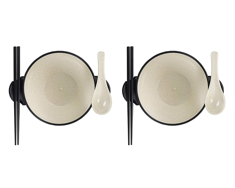 - Set contains two 33.5oz (993ml) Ramen bowls, two 5.5" (14cm) spoons and 2 sets of 8.6" (22cm) chopsticks.