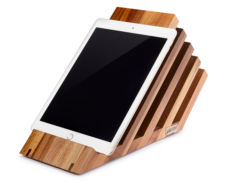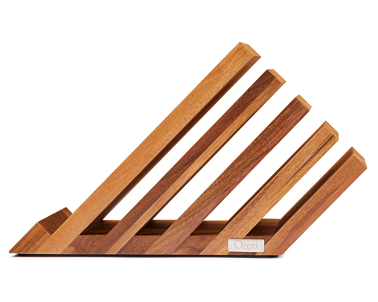 Thoughtfully designed with a tablet holder for easy access to your favorite recipe apps, the Italian-made Ozeri Magnetic Knife Block and Tablet Holder empowers the modern chef to be inspired by one’s favorite cooking videos and recipes, while cutting, chopping, mincing and slicing. Durably made for lifetime use and likely to outlast all but the finest cutlery, the Ozeri Knife Block is exclusively made in Italy with artisan craftsmanship accumulated from over 2 passionate generations of transformative carpentry, resulting in an innovative open air design that prevents mold and rust while maintaining both functionality and an elegant form. In keeping with the adage “leave the world a little better than you found it”, the Ozeri Magnetic Knife Block uses sturdy wood sourced from European Regenerative Agroforestry projects that seek to not only offset the resources needed to make our premium knife block, but also contribute to restoring forestry destroyed by outdated and ecologically irresponsible supply chain sources. For the most secure storage, the Knife Block utilizes powerful Neodymium magnets for easy and quick access to up to 14 knives, while reducing the edge damage caused by repeated insertion into traditional knife blocks. Available in three classic wood colors (Natural Beech Wood, Dark Walnut Wood and Black-Lacquered Beech Wood) to fit any kitchen décor. Made in Italy, your satisfaction is guaranteed. Tablet not included and shown for illustration only.