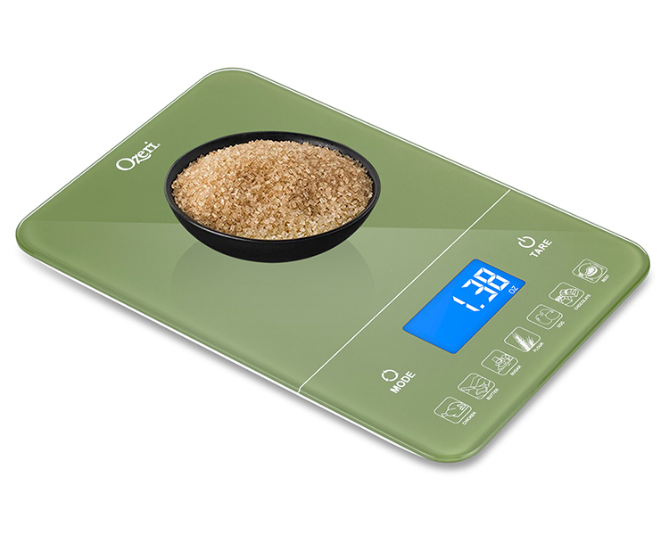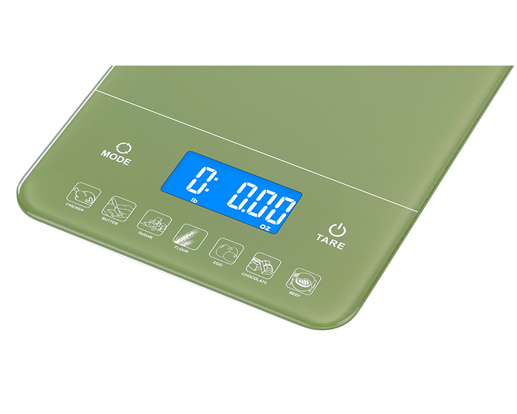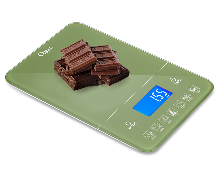 - Provides touch-button instant caloric (Kcal) values based on the portion of butter, sugar, flour, eggs, chocolate, chicken or beef placed on the scale.