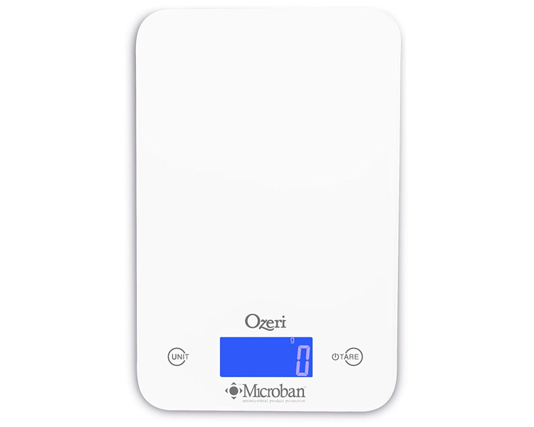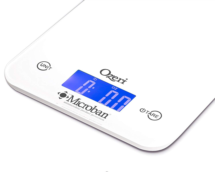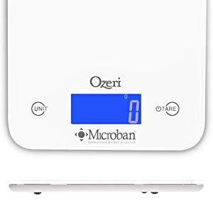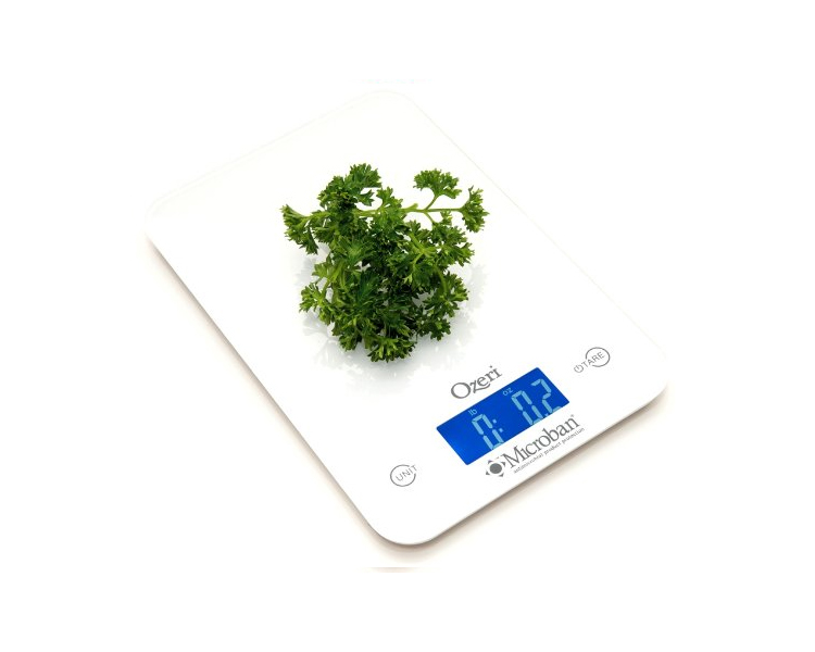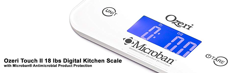 The Ozeri Touch II Professional Digital Kitchen Scale with Microban Antimicrobial Product Protection is the industry's first kitchen scale to include antimicrobial protection that disrupts the growth of bacteria that can cause stains, odors and product deterioration. Infused at the point of manufacturing, Microban antimicrobial protection works for the lifetime of the scale and helps maintain surface cleanliness. On an unprotected kitchen scale surface, bacteria can double in number every 20 minutes.
