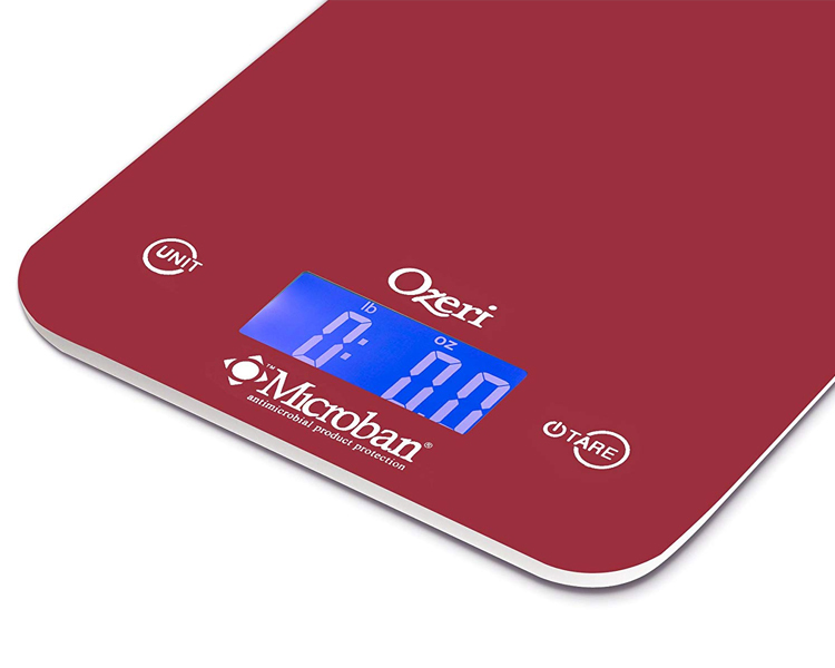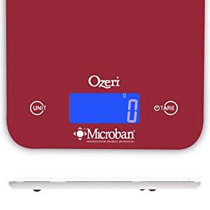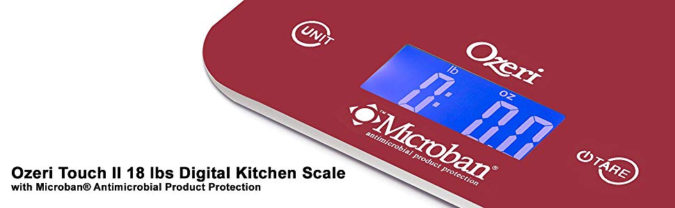 The Ozeri Touch II Professional Digital Kitchen Scale with Microban Antimicrobial Product Protection is the industry's first kitchen scale to include antimicrobial protection that disrupts the growth of bacteria that can cause stains, odors and product deterioration. Infused at the point of manufacturing, Microban antimicrobial protection works for the lifetime of the scale and helps maintain surface cleanliness. On an unprotected kitchen scale surface, bacteria can double in number every 20 minutes.