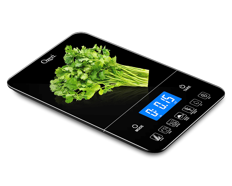 - Boasts an ultra-modern design and a large weighing platform with touch-sensitive Unit and Tare buttons for effortless operation.