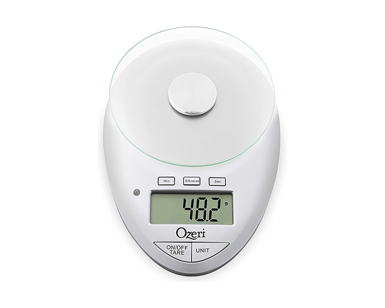 Now featuring a built-in countdown kitchen timer with 3 alarm modes, the newly designed Ozeri Pro II Digital Kitchen Scale is the ultimate accessory for the modern kitchen. Designed for the culinary perfectionist, the Pro II Digital Kitchen Scale features a large removable glass weighing platform that cleans easily. It boasts a capacity range from 0.05 oz to 12 lbs (1 gram to 5.4 kg), with a graduation of 0.05 oz (1 gram). The exceptionally accurate Pro II incorporates oversized buttons that generate an audible click confirmation, and an automatic Tare button that quickly calculates the net weight of your ingredients by subtracting the container weight, whether the container is a bowl, tray, or plate.