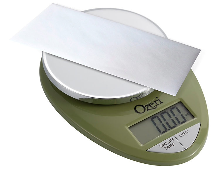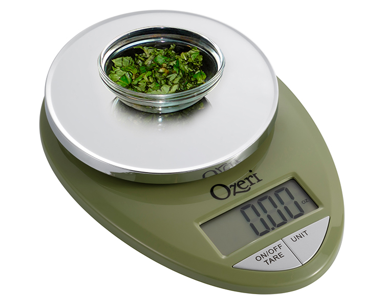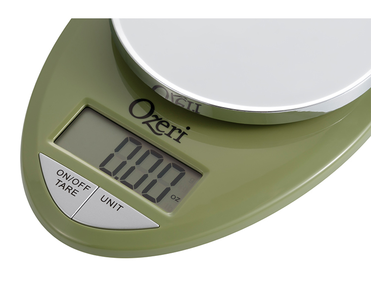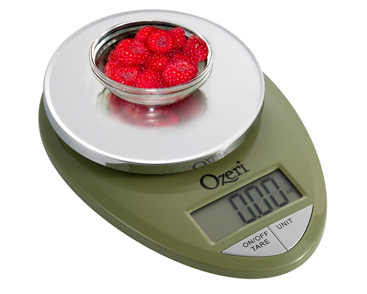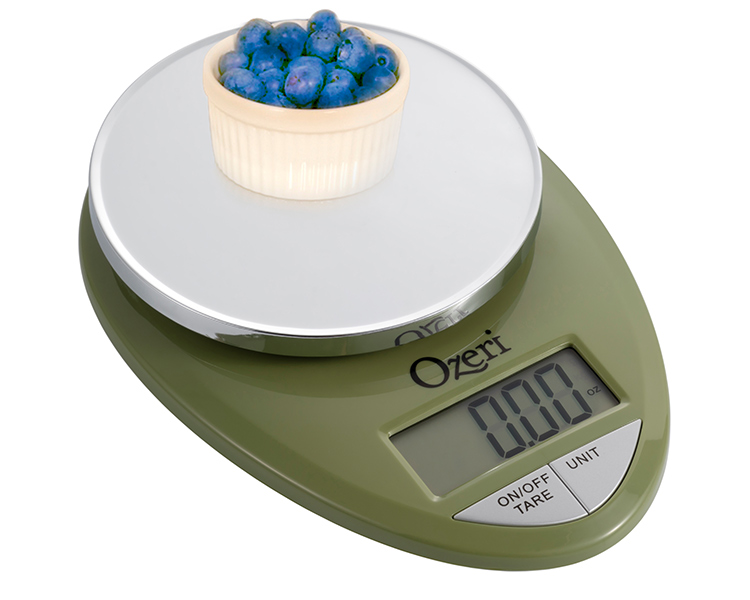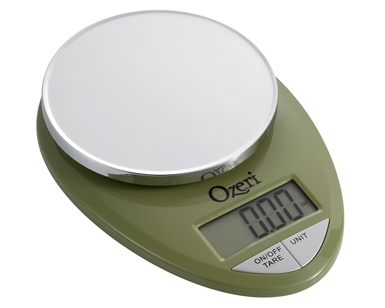 The Ozeri Pro Digital Kitchen Scale in Chrome is designed for the culinary perfectionist who desires superior accuracy in function and elegance in form. The Ozeri Pro Digital Kitchen Scale incorporates oversized buttons that generate an audible click confirmation for the fast-paced cook, including an automatic Tare button that quickly calculates the net weight of your ingredients by subtracting the container weight, whether the container is a bowl, tray, plate or anything else. The scale's weighing platform is finished in an elegant chrome color, and has a capacity range from a mere 0.05 ounces to 12 lbs with a precise graduation of 0.05 oz or 1 gram. The scale also displays results in both the US and international metric systems (grams | ounces | pounds | kilograms). The large screen features a new bright LCD with an improved viewing angle for the on-the-go cook. The Ozeri Pro Digital Kitchen Scale in Chrome also includes a 3 minute automatic turn-off that preserves battery life while giving you time to confirm each measurement. Ships with 2 AAA batteries included.