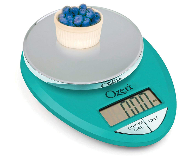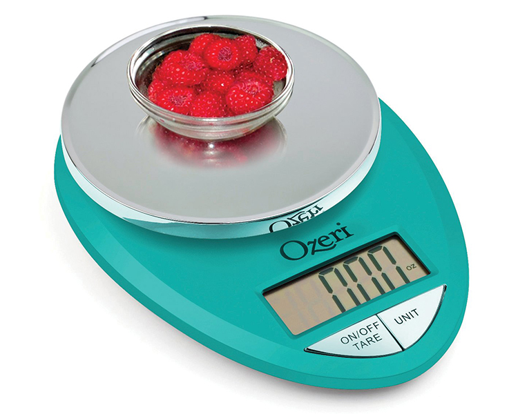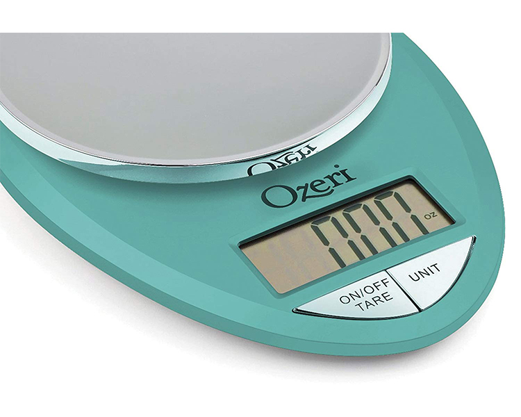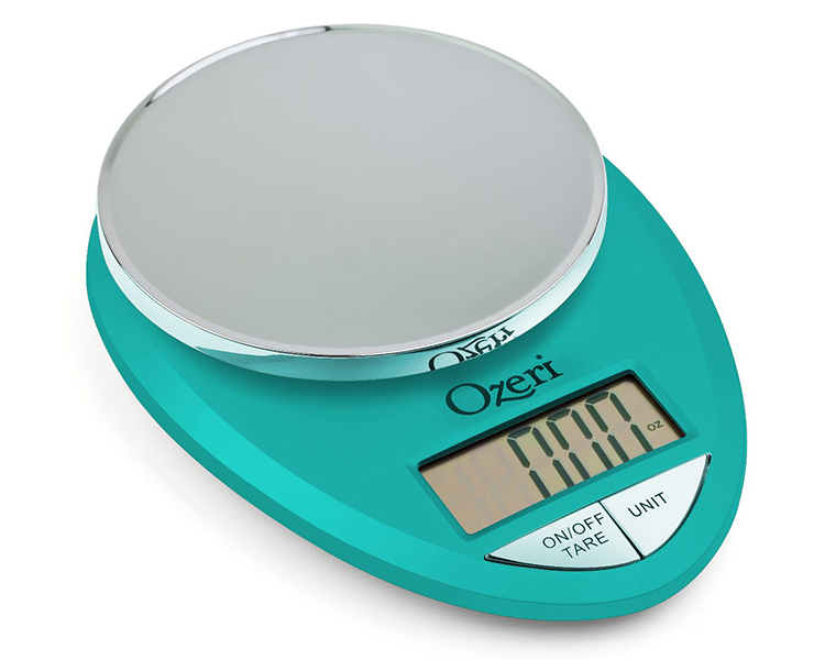 The Ozeri Pro Digital Kitchen Scale in Chrome is designed for the culinary perfectionist who desires the superior accuracy in function and elegance in form. The Ozeri Pro Digital Kitchen Scale incorporates oversized buttons that generate an audible click confirmation for the fast-paced cook, and an automatic Tare button that quickly calculates the net weight of your ingredients by subtracting the container weight, whether the container is a bowl, tray, plate or anything else. The scale's weighing platform is finished in an elegant chrome color, and has a capacity range from a mere 0.05 ounces to 12 lbs with a precise graduation of 0.05 oz or 1 gram. The scale also displays results in both the US and international metric systems (grams | ounces | pounds | kilograms). The large screen features a new bright LCD with an improved viewing angle for the on-the-go cook. The Ozeri Pro Digital Kitchen Scale in Chrome also includes a 3 minute automatic turn-off that preserves battery life while giving you time to confirm each measurement. Ships with 2 AAA batteries included.