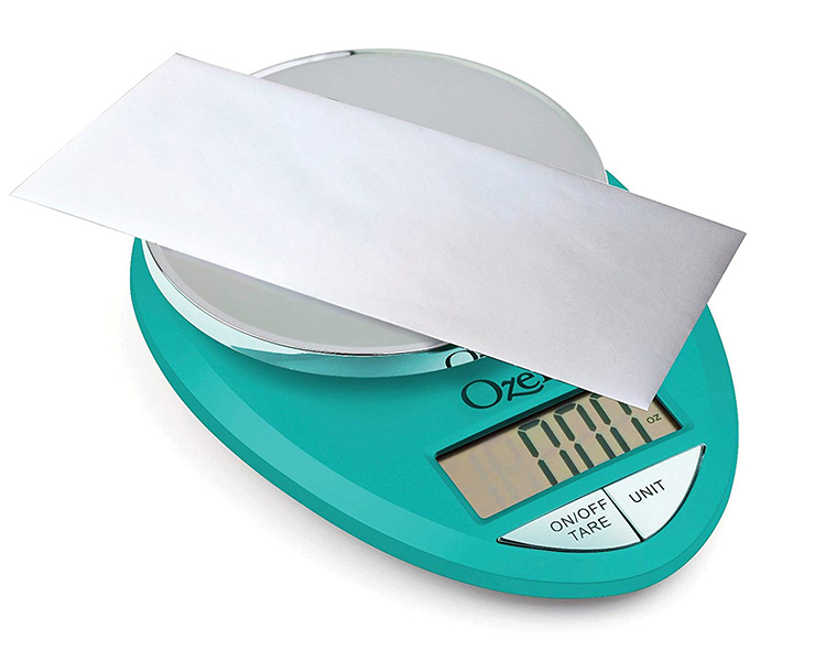 - Oversized buttons for easy operation, and a large LCD screen that displays weights in pounds (lbs), kilograms, grams, and ounces.