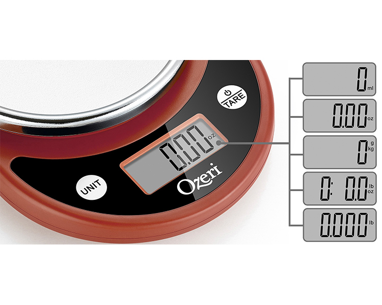 - Precision you can rely on -- Accurate, elegant, and effortless to use, the updated Pronto kitchen scale now features Ozeri’s Variable Graduation Technology for ultra‑fine measurements: 0.1 g increments below 1000 g and 0.5 g increments up to 6000 g (or 0.001 oz below 100 oz and 0.01 oz up to 211.6 oz).
