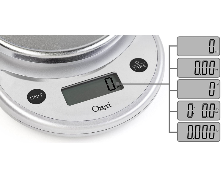 - Precision you can rely on -- Accurate, elegant, and effortless to use, the updated Pronto kitchen scale now features Ozeri’s Variable Graduation Technology for ultra‑fine measurements: 0.1 g increments below 1000 g and 0.5 g increments up to 6000 g (or 0.001 oz below 100 oz and 0.01 oz up to 211.6 oz).
