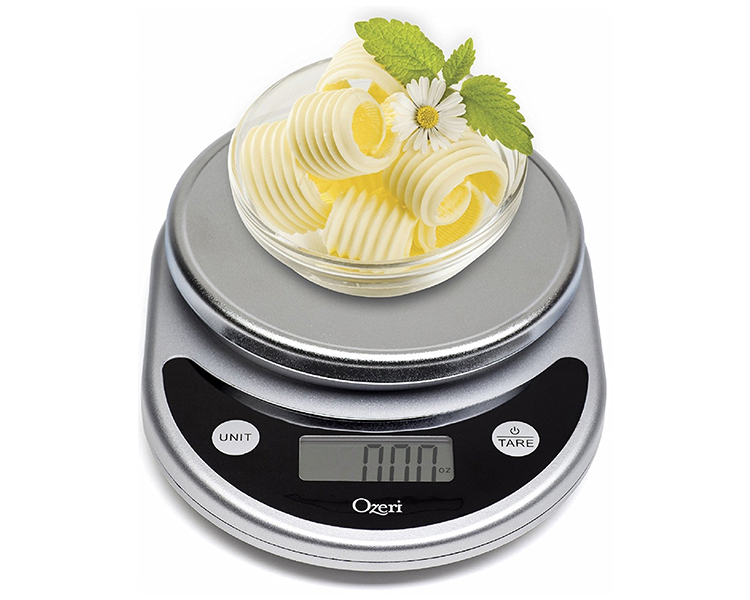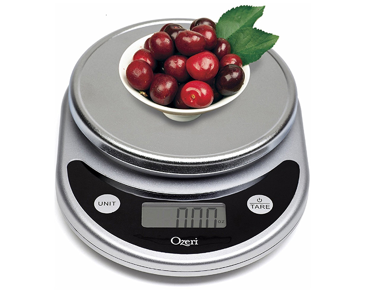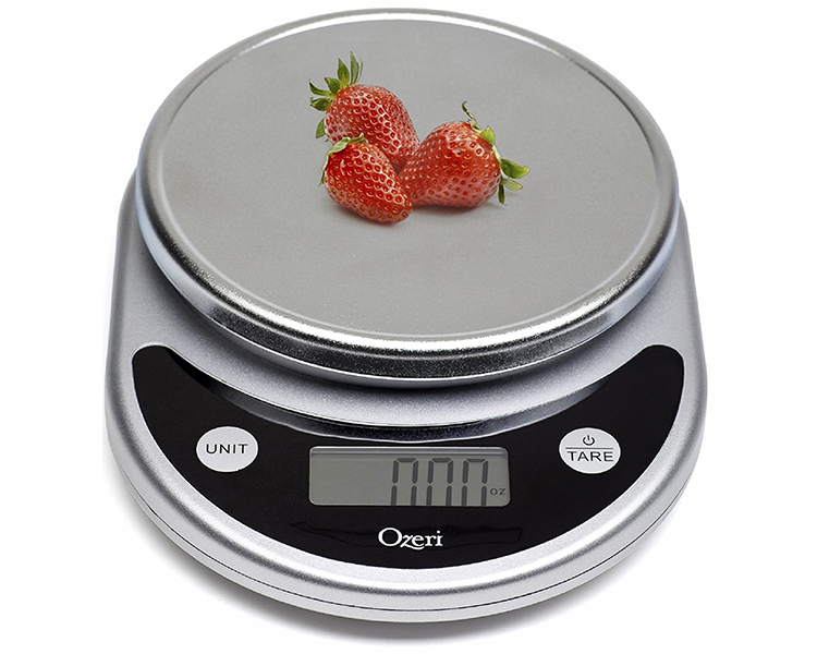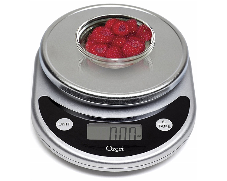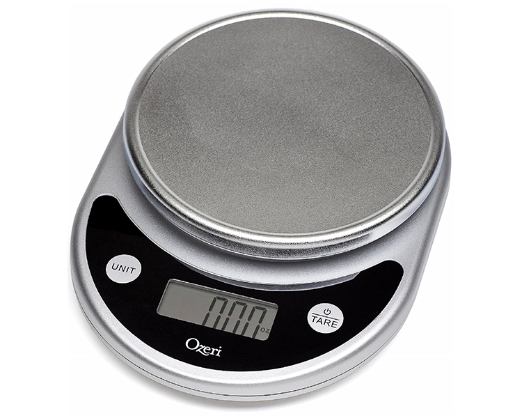 A winner of awards from brands such as the Food Network, New York Magazine’s The Strategist, The New York Times’ Wirecutter, CNN Underscored, and proudly selected by the Dana Farber Cancer Institute for a Harvard Medical School study on weight loss and the prevention of breast cancer, the Pronto Digital Kitchen Scale by Ozeri is an uncompromising scale for the kitchen and home. The Pronto is built with the latest sensor technology to ensure an accurate and immediate response for the fast-paced chef and features an enlarged weighing platform to accommodate larger bowls and food items. The ultimate companion for the serious cook, the Pronto's large Unit button lets you change the unit of measurement with push-button ease, with 6 different units to choose from (g, lbs, lbs:oz, oz, ml, kg) - e.g. easily convert 539 grams to 1.188 pounds to 1 pound 3 ounces to 19.01 ounces to 539 ml to 0.539 kg. The large LCD provides a wide viewing angle. Manufactured to rigorous quality specifications, the Pronto weighs up to 11.24 pounds (5100 grams) in graduations of just 0.04 ounces (1 gram) to help you achieve your diet and health goals. The Pronto comes equipped with an ever-handy Tare button that subtracts the weight of any bowl or container to calculate the net weight of your ingredients. The Pronto's Tare and Unit buttons provide an audible and tactile click confirmation, so you never have to push twice when preparing meals in a hurry. Both the Unit and Tare buttons are separated from the weighing platform to prevent movement when pressing either button, ensuring the highest accuracy. Elegantly designed and available in multiple colors, the Pronto is sure to complement any kitchen decor. The Pronto also doubles as a postage machine for mail or a scale for children's science projects. The Pronto cleans quickly and stores easily, runs on 2 AAA batteries (included) with an easy-access battery compartment, and features a programmable 2-to-5-minute automatic power-off setting.