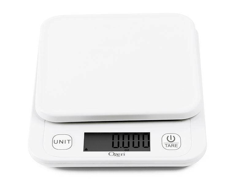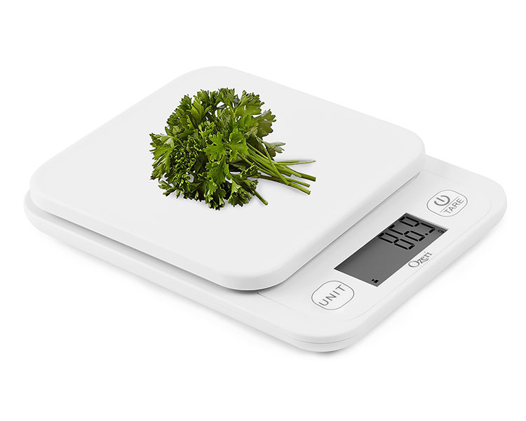 The new Ozeri Garden and Kitchen Scale II features Ozeri’s latest 420 Variable Graduation Technology that allows you to weigh your most delicate garden herbs and greens in graduations as precise as 0.1 g / 0.005 oz. Ozeri’s 420 Variable Graduation Technology achieves a remarkably accurate graduation of 0.1 g / 0.005 oz for items that weigh 420 grams or less (14.82 oz), which is 10 times as precise as the standard 1 gram scale. For items weighing over 420 grams, the Ozeri Garden Scale II impressively measures to the nearest 0.5 g or 0.01 oz, which is twice the accuracy of a standard 1 gram scale. With a max weighing capacity of 6000 g / 13.22 lbs, the Ozeri Garden Scale II is a most capable tool for all your diet, health, and wellness goals. This Ozeri Scale delivers unprecedented accuracy for the most detailed recipes and immediate response times to keep up with the fast-paced chef. It's just as handy as it is in the kitchen and garden, and doubles as a postage machine for your mail and as a great tool for classroom or homework science projects. An indispensable companion for the serious cook, the Ozeri Garden and Kitchen Scale II’s Unit button lets you change the unit of measurement with push-button ease, with 6 units of measurements (oz, ml, g, lbs, lbs:oz, kg) and displays results on an easy-to-read LCD screen - e.g. easily convert 16.311 ounces to 462.4 ml to 462.4 grams to 1.019 pounds to 1 pound and 0.304 ounces to 0.4624 kg. Manufactured to Ozeri’s rigorous quality specifications, it also features a handy Tare button which automatically subtracts the weight of any pouch, bag or container to calculate the net weight of garden plants or other ingredients. Both the Unit and Tare buttons are separated from the actual weighing platform, which prevents movement on the weighing platform when pressing either button, thereby ensuring the highest possible accuracy. The Ozeri Garden Scale II’s Tare and Unit buttons also provide a tactile, audible click confirmation, so you never have to push twice when measuring recipes in a hurry. The Garden Scale’s sleek aesthetic and availability in multiple colors complement any kitchen decor, and it cleans quickly and stores easily. It features a large LCD display with an enhanced viewing angle. The new Ozeri Garden and Kitchen Scale II automatically powers-off to maximize battery life and runs on 2 AAA batteries (included), with an easy-access battery compartment. It also features an adjustable auto-power-off toggle that allows you change the power-off timer from the default of 2 minutes of inactivity, to 5 minutes for when that extra time is needed.
