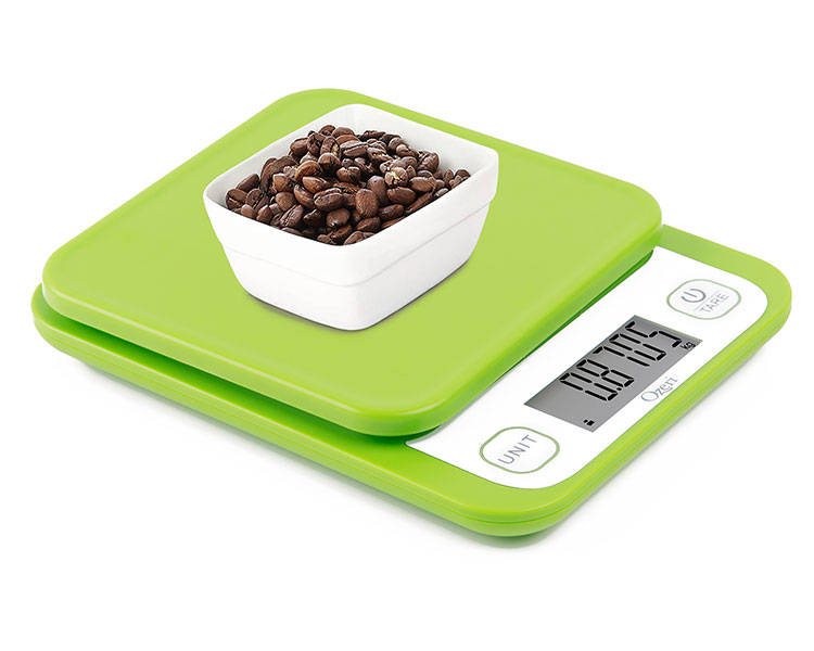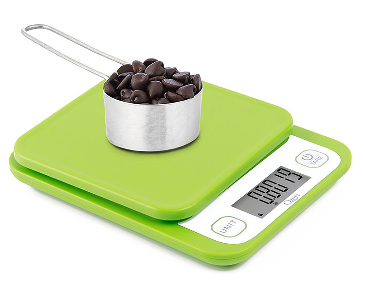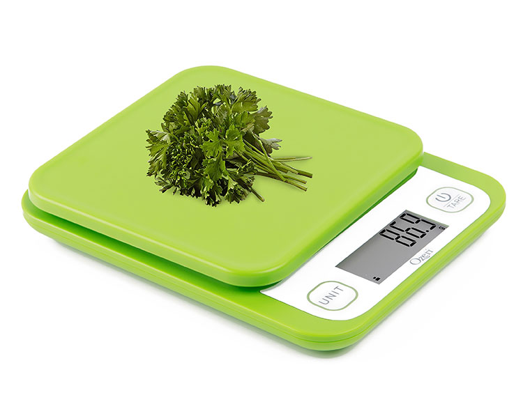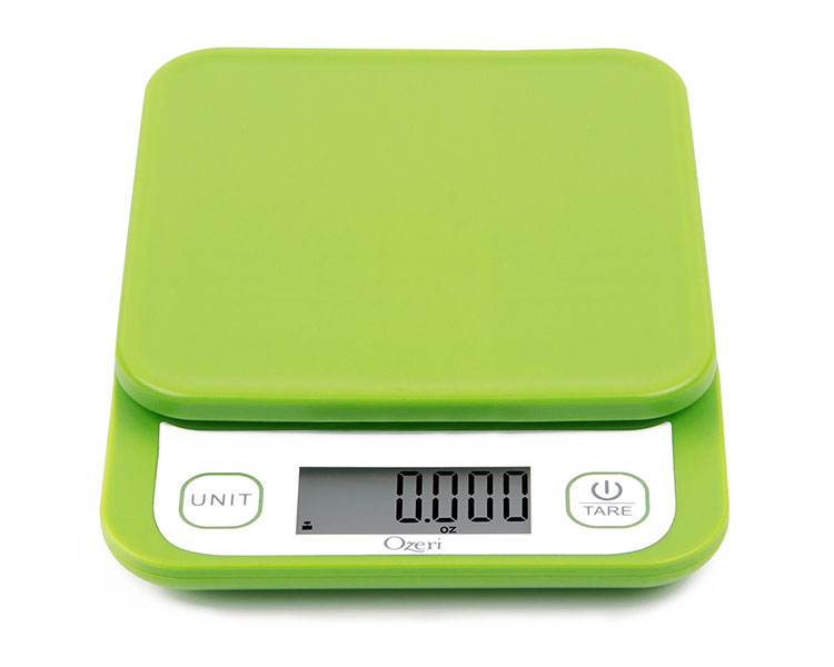 The new Ozeri Garden and Kitchen Scale II features Ozeri’s latest 420 Variable Graduation Technology that allows you to weigh your most delicate garden herbs and greens in graduations as precise as 0.1 g / 0.005 oz. Ozeri’s 420 Variable Graduation Technology achieves a remarkably accurate graduation of 0.1 g / 0.005 oz for items that weigh 420 grams or less (14.82 oz), which is 10 times as precise as the standard 1 gram scale. For items weighing over 420 grams, the Ozeri Garden Scale II impressively measures to the nearest 0.5 g or 0.01 oz, which is twice the accuracy of a standard 1 gram scale. With a max weighing capacity of 6000 g / 13.22 lbs, the Ozeri Garden Scale II is a most capable tool for all your diet, health, and wellness goals. This Ozeri Scale delivers unprecedented accuracy for the most detailed recipes and immediate response times to keep up with the fast-paced chef. It's just as handy as it is in the kitchen and garden, and doubles as a postage machine for your mail and as a great tool for classroom or homework science projects. An indispensable companion for the serious cook, the Ozeri Garden and Kitchen Scale II’s Unit button lets you change the unit of measurement with push-button ease, with 6 units of measurements (oz, ml, g, lbs, lbs:oz, kg) and displays results on an easy-to-read LCD screen - e.g. easily convert 16.311 ounces to 462.4 ml to 462.4 grams to 1.019 pounds to 1 pound and 0.304 ounces to 0.4624 kg. Manufactured to Ozeri’s rigorous quality specifications, it also features a handy Tare button which automatically subtracts the weight of any pouch, bag or container to calculate the net weight of garden plants or other ingredients. Both the Unit and Tare buttons are separated from the actual weighing platform, which prevents movement on the weighing platform when pressing either button, thereby ensuring the highest possible accuracy. The Ozeri Garden Scale II’s Tare and Unit buttons also provide a tactile, audible click confirmation, so you never have to push twice when measuring recipes in a hurry. The Garden Scale’s sleek aesthetic and availability in multiple colors complement any kitchen decor, and it cleans quickly and stores easily. It features a large LCD display with an enhanced viewing angle. The new Ozeri Garden and Kitchen Scale II automatically powers-off to maximize battery life and runs on 2 AAA batteries (included), with an easy-access battery compartment. It also features an adjustable auto-power-off toggle that allows you change the power-off timer from the default of 2 minutes of inactivity, to 5 minutes for when that extra time is needed.