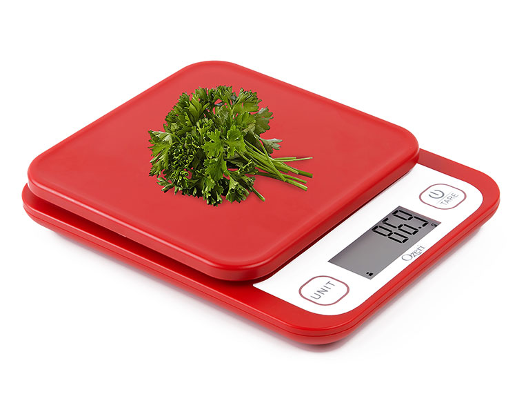 The new Ozeri Garden and Kitchen Scale II features Ozeri’s latest 420 Variable Graduation Technology that allows you to weigh your most delicate garden herbs and greens in graduations as precise as 0.1 g / 0.005 oz. Ozeri’s 420 Variable Graduation Technology achieves a remarkably accurate graduation of 0.1 g / 0.005 oz for items that weigh 420 grams or less (14.82 oz), which is 10 times as precise as the standard 1 gram scale. For items weighing over 420 grams, the Ozeri Garden Scale II impressively measures to the nearest 0.5 g or 0.01 oz, which is twice the accuracy of a standard 1 gram scale. With a max weighing capacity of 6000 g / 13.22 lbs, the Ozeri Garden Scale II is a most capable tool for all your diet, health, and wellness goals. This Ozeri Scale delivers unprecedented accuracy for the most detailed recipes and immediate response times to keep up with the fast-paced chef. It's just as handy as it is in the kitchen and garden, and doubles as a postage machine for your mail and as a great tool for classroom or homework science projects. An indispensable companion for the serious cook, the Ozeri Garden and Kitchen Scale II’s Unit button lets you change the unit of measurement with push-button ease, with 6 units of measurements (oz, ml, g, lbs, lbs:oz, kg) and displays results on an easy-to-read LCD screen - e.g. easily convert 16.311 ounces to 462.4 ml to 462.4 grams to 1.019 pounds to 1 pound and 0.304 ounces to 0.4624 kg. Manufactured to Ozeri’s rigorous quality specifications, it also features a handy Tare button which automatically subtracts the weight of any pouch, bag or container to calculate the net weight of garden plants or other ingredients. Both the Unit and Tare buttons are separated from the actual weighing platform, which prevents movement on the weighing platform when pressing either button, thereby ensuring the highest possible accuracy. The Ozeri Garden Scale II’s Tare and Unit buttons also provide a tactile, audible click confirmation, so you never have to push twice when measuring recipes in a hurry. The Garden Scale’s sleek aesthetic and availability in multiple colors complement any kitchen decor, and it cleans quickly and stores easily. It features a large LCD display with an enhanced viewing angle. The new Ozeri Garden and Kitchen Scale II automatically powers-off to maximize battery life and runs on 2 AAA batteries (included), with an easy-access battery compartment. It also features an adjustable auto-power-off toggle that allows you change the power-off timer from the default of 2 minutes of inactivity, to 5 minutes for when that extra time is needed.