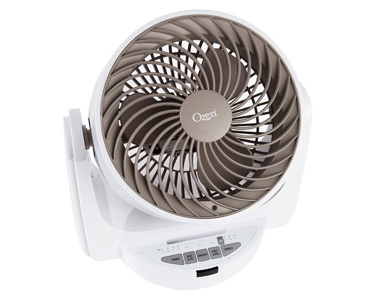 The Brezza III can also be used in non-oscillating mode for uniform airflow. The 4 speeds allow you to choose between a cool breeze, refreshing wind, a more powerful stream of air, and Turbo mode for maximum cooling. The 4-hour programmable timer allows you set the fan to automatically turn off after you fall asleep. The Brezza III 10" Desk Fan by Ozeri is one of the most effective fans at overcoming summer heat or simply refreshing a stale room. The Ozeri Brezza III 10" Desk Fan ships fully assembled with a convenient carrying handle, and weighs 6 lbs for easy transporting.