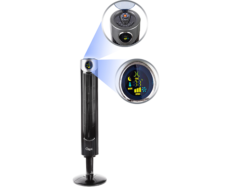 The Ozeri Ultra Wind Fan also includes 3 selectable airflow patterns designed to foster sleep, relaxation and comfort, and an intelligent LED screen with room temperature display. All of the Tower Fan's features, including the room temperature display, are illuminated on the Fan's multi-colored bright LED screen, and can be activated via the included enhanced-range remote or via the built-in control panel. The new and improved LED screen now features a light-dimming night mode that dims the screen for light sensitive sleepers. The Ozeri Ultra Wind Fan also features a 12 hour timer that can be programmed in 1 hour increments with push-button ease, and ships included with a removable extension column that adjusts the Fan's height from 32" to 42".