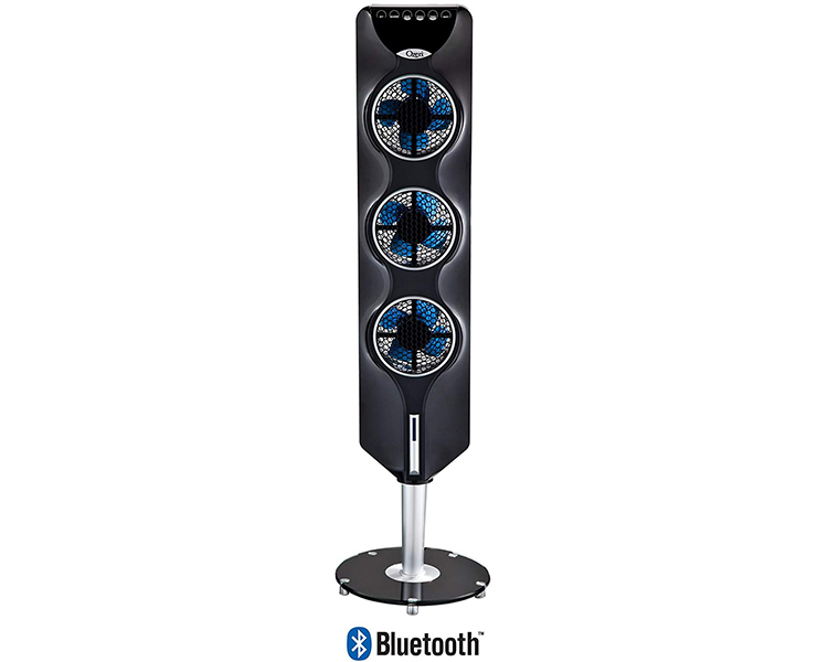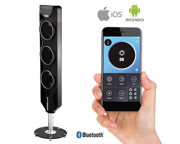 Now featuring Bluetooth technology for smart phone control, the new Ozeri 3x 44 inch Bluetooth Tower fan defines the latest in stylistic innovation with its visually stunning design, slim form factor and elegant glass base. At less than 3 inches thick, the svelte 3x Bluetooth fan boasts 3 independently controllable fans with passive noise cancellation technology for remarkable airflow velocity at less than 50DB. The 3x Bluetooth fan's passive noise reduction technology utilizes the physics of blade curvature to generate mitigating sound waves that reduce blade noise. The 3x Bluetooth fan is engineered with 3 independently controllable fans and 3 fan speeds, offering the ultimate customized airflow.