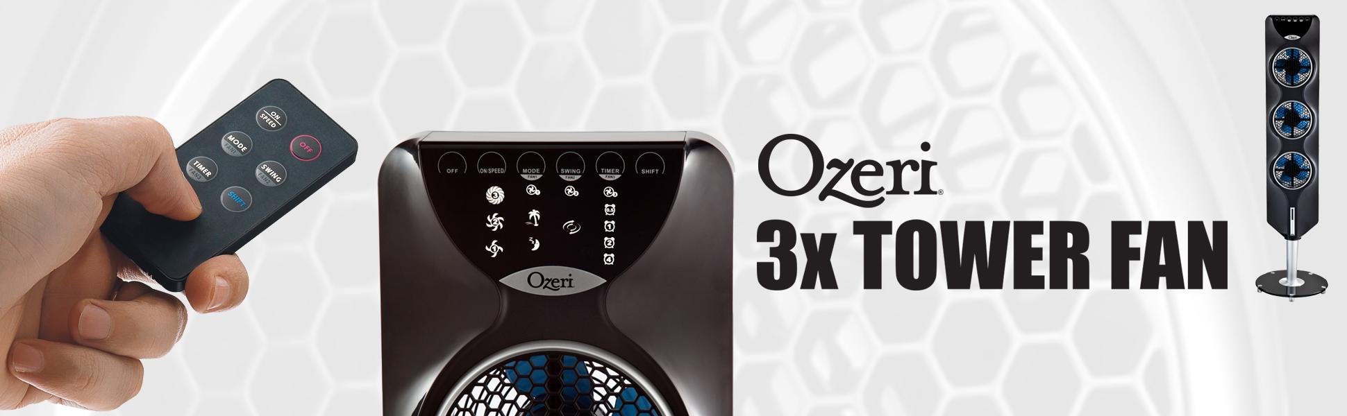 It also features 3 preprogrammed airflow patterns designed to foster sleep, relaxation and comfort with 90 degree whisper-quiet oscillation for optimal air circulation for timely relief on a sweltering summer day or for refreshing circulation all year long. The Ozeri 3x Tower Fan also features a 7.5 hour timer that can be programmed in 30 minute increments with ease. All of the Fan's features, including programmable timer, easily controlled via the included extended-range remote or via the touch sensitive LED control panel. The 3x Tower fan features a dismountable design that only requires the hand assembly of fan base using an included large nut, with no tools required. Satisfaction guaranteed.
